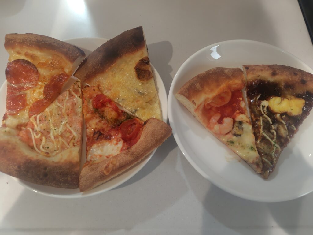 それと今回は、各ピザを1ピースずつお皿に盛り付けて食べ比べてランキングにしました。