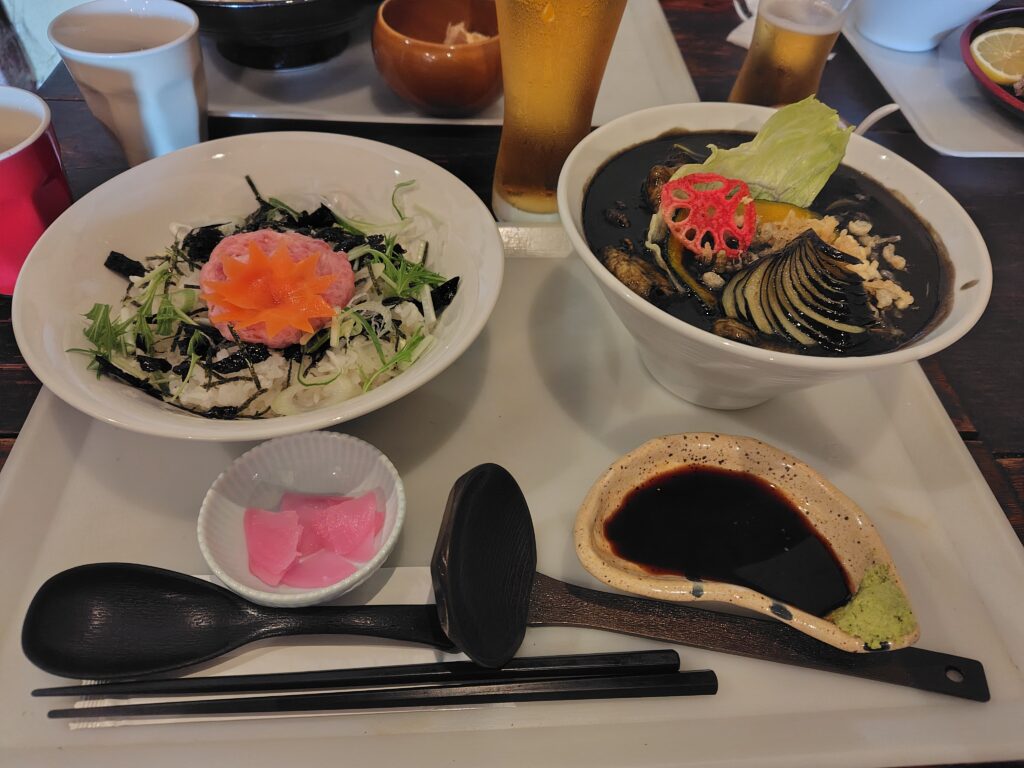 こちらがネギトロ丼と黒カレーうどんセットです。1,350円でこのボリュームはヤバいです。
