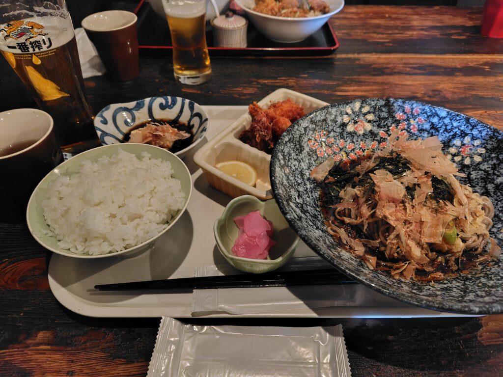 唐揚げのサクサクを楽しみながら、蕎麦の風味を楽しめる。